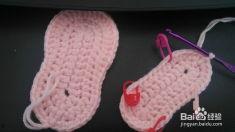 2. 钩第一层:按照鞋底模板的形状,用钩针钩出第一层鞋底。这一层主要是为了固定鞋底形状,所以不需要太厚。
