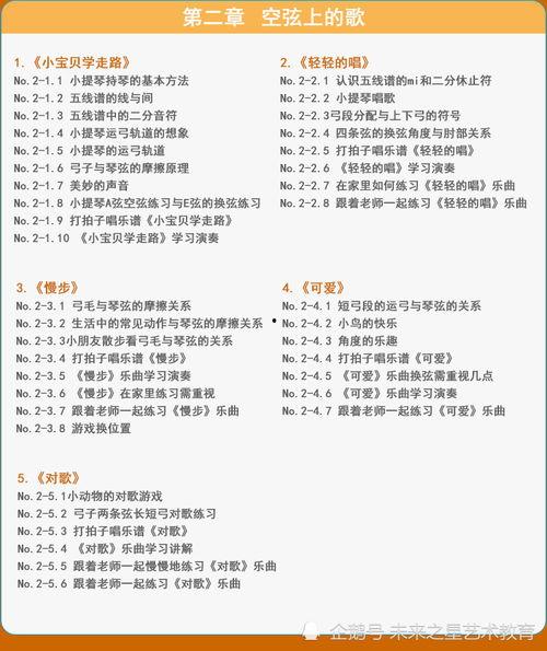 除了视频教程,教程书籍也是不可或缺的学习工具。这些书籍通常包含了小提琴的基本知识、演奏技巧以及练习曲目。例如,《小提琴入门教程》一书,详细介绍了小提琴的基本构造、演奏姿势、音阶练习等,非常适合初学者。